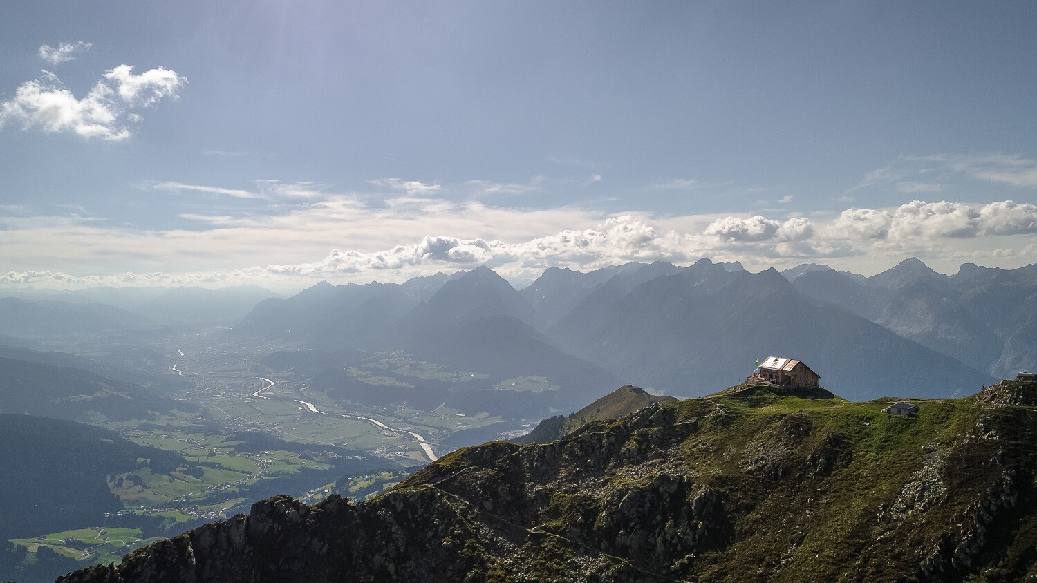 Hecherhaus s velkou sluneční terasou se nachází přímo u horní stanice lanovky Kellerjochbahn a nabízí fantastický výhled na údolí Innu a pohoří Karwendel..