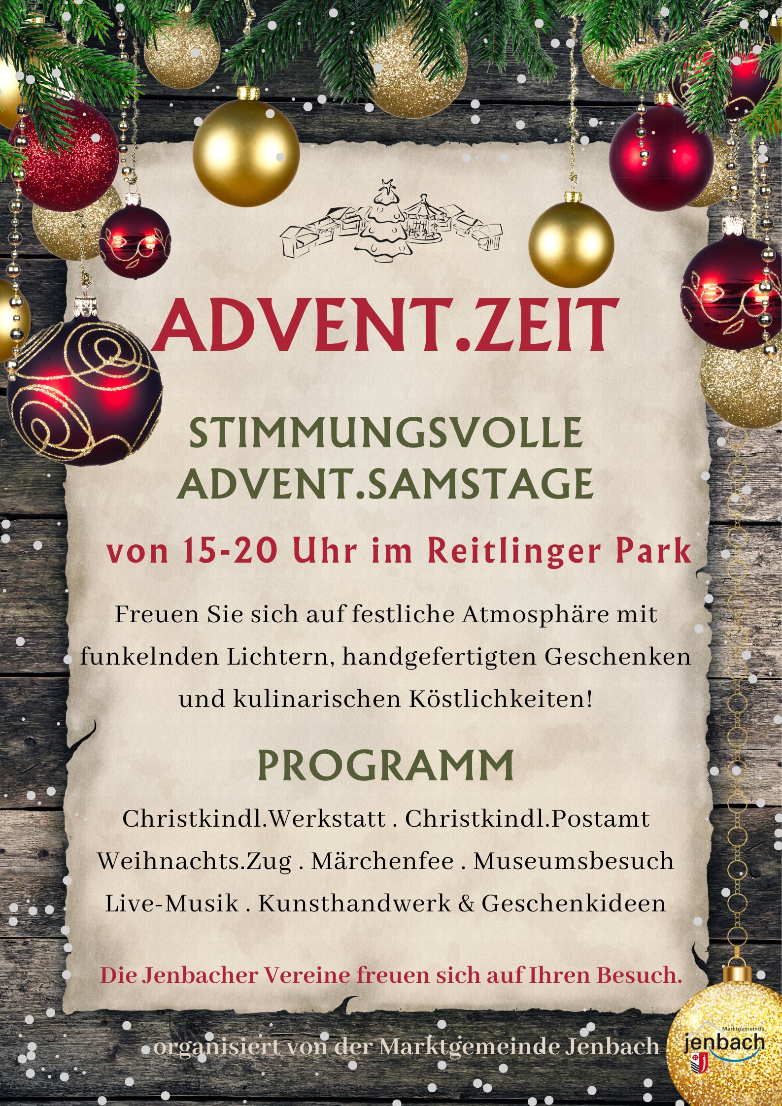 Die Marktgemeinde Jenbach und die Jenbacher Vereine laden herzlich zum stimmungsvollen Verweilen in der ADVENT.ZEIT im Reitlinger Park ein.