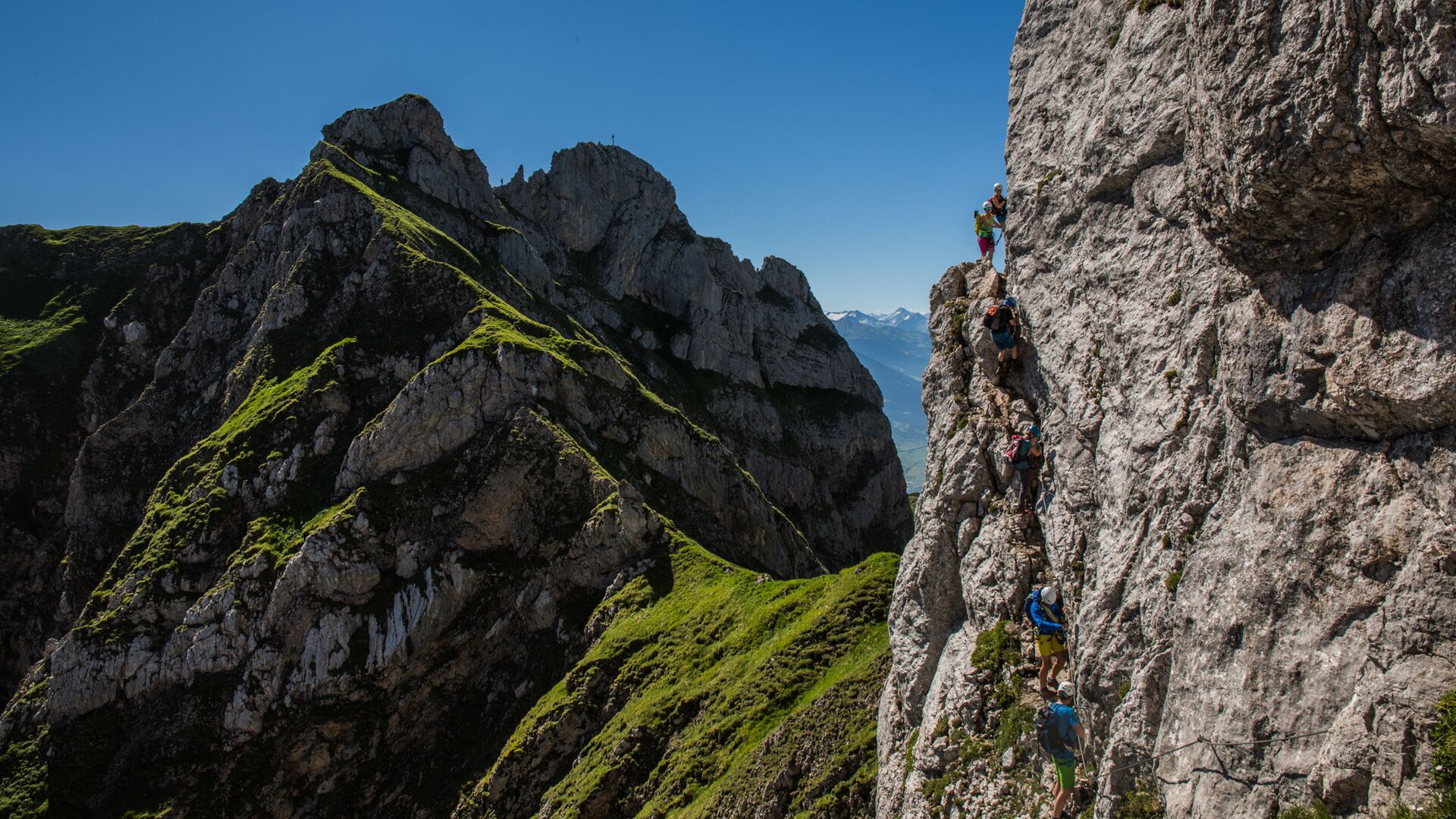 Der Achensee 5-Gipfel-Klettersteig bietet auf 2km Länge steile Klettersteigpassagen und Wanderabschnitte. Er verbindet 5 Gipfel mit Routen unterschiedlicher Schwierigkeit.