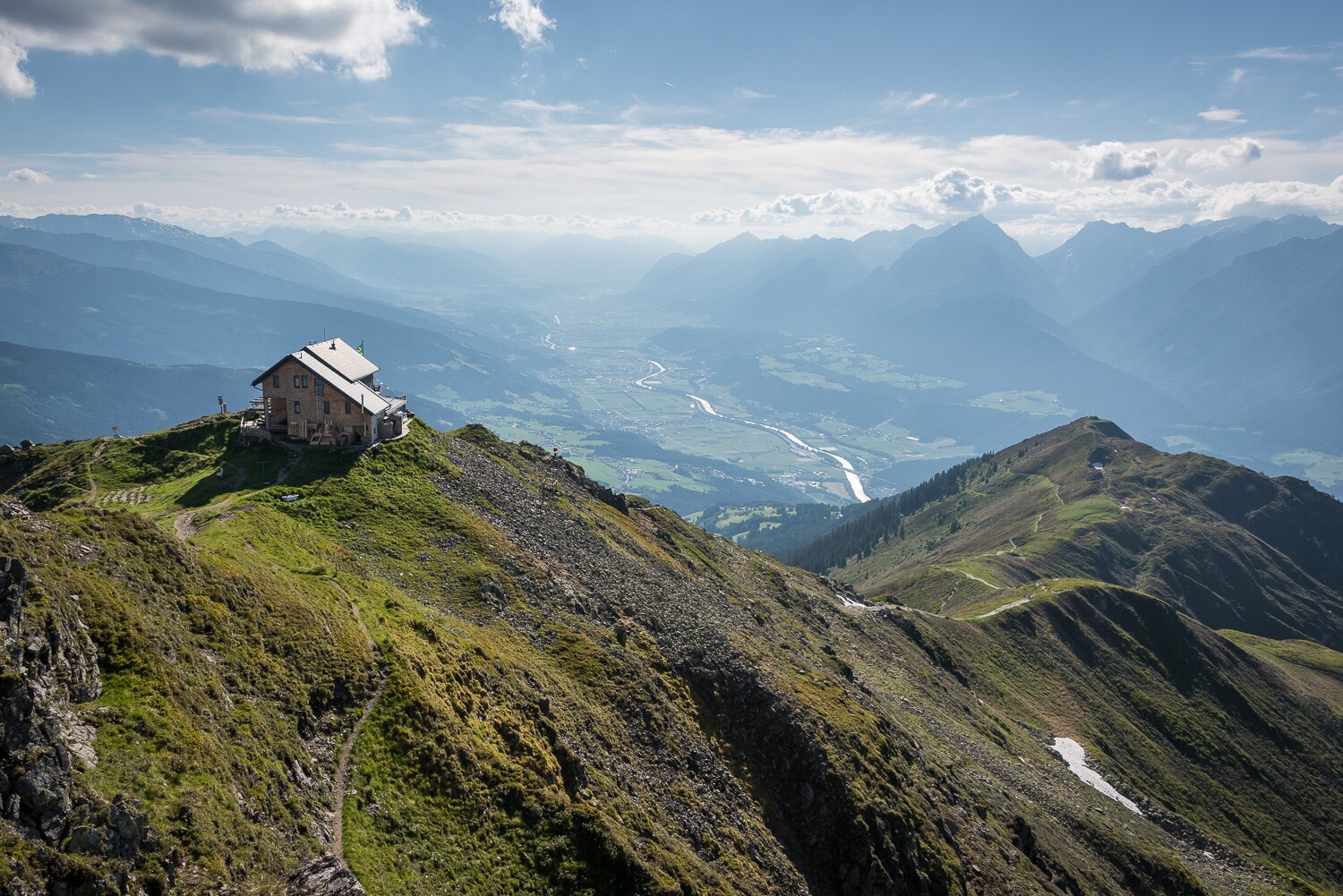 Depuis le Hecherhaus, le sentier continue en direction du Naunzstand. Il se poursuit jusqu'au refuge Kellerjoch, idéal pour faire une pause. Il est maintenant possible de marcher sur la crête jusqu'à la chapelle Kellerjoch (environ 30 minutes). Il est cependant nécessaire de ne pas avoir le vertige et d'avoir le pied sûr.