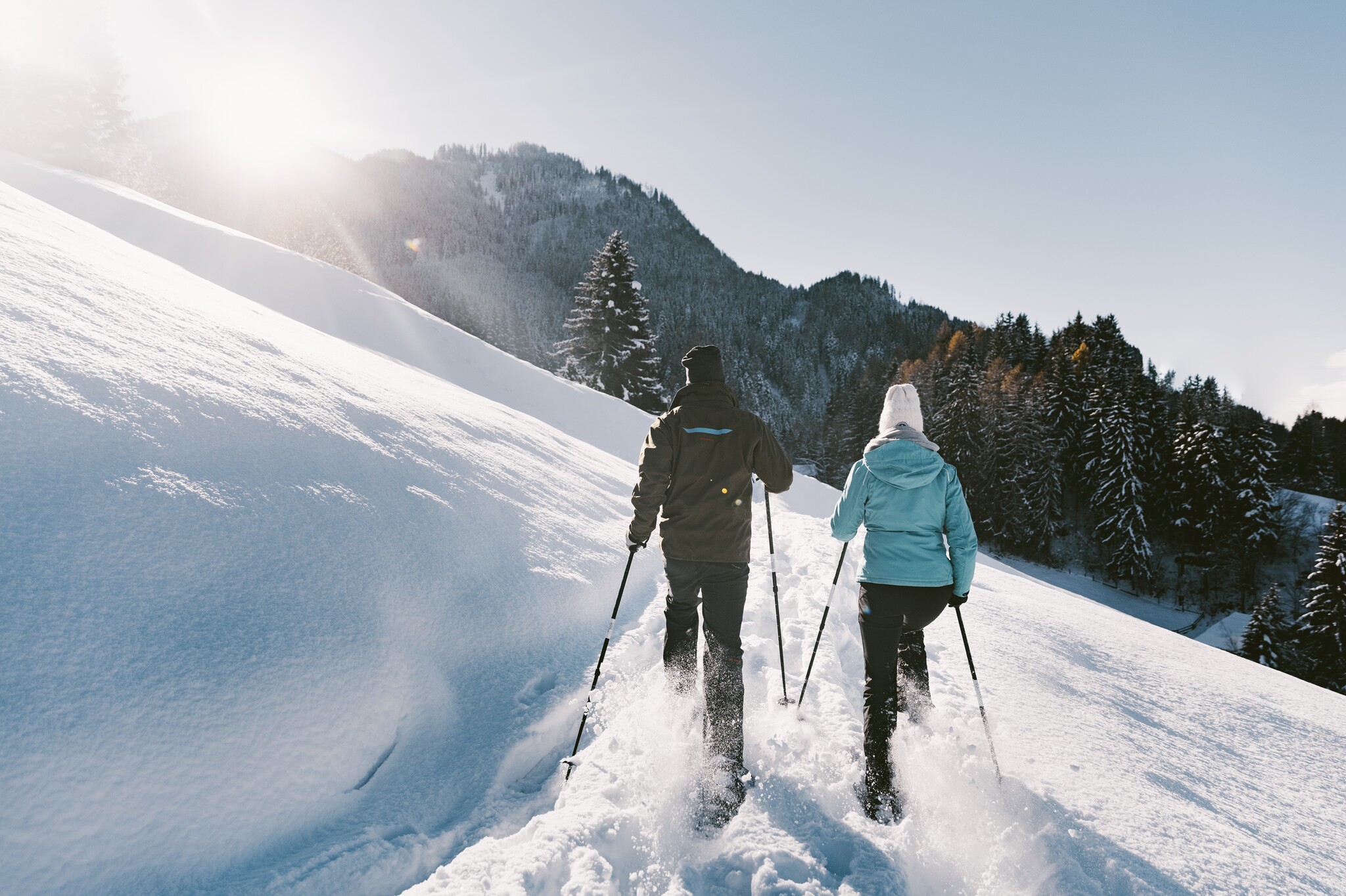Questa escursione con le racchette da neve per principianti vi porta attraverso boschi tranquilli e campi di neve leggera - sempre accompagnati da splendide viste sulla valle. Una volta giunti a destinazione, potrete scendere con lo slittino sulla pista di Nonsalm.